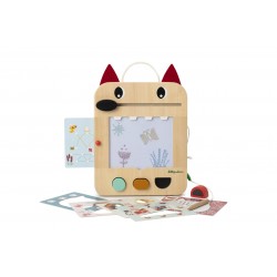 Avec ses tampons géométriques, ses cartes de jeu et son crayon en bois attaché, tout est pensé pour stimuler imagination et motricité fine.